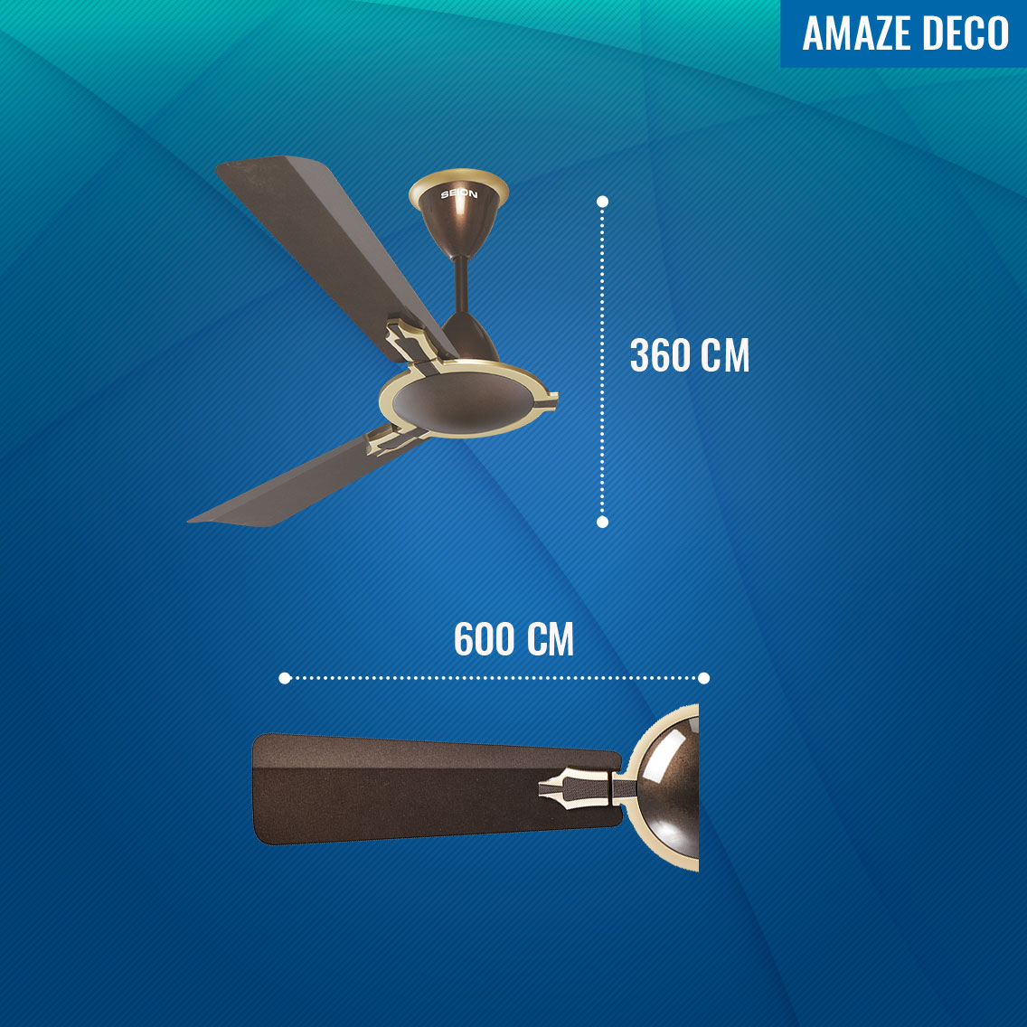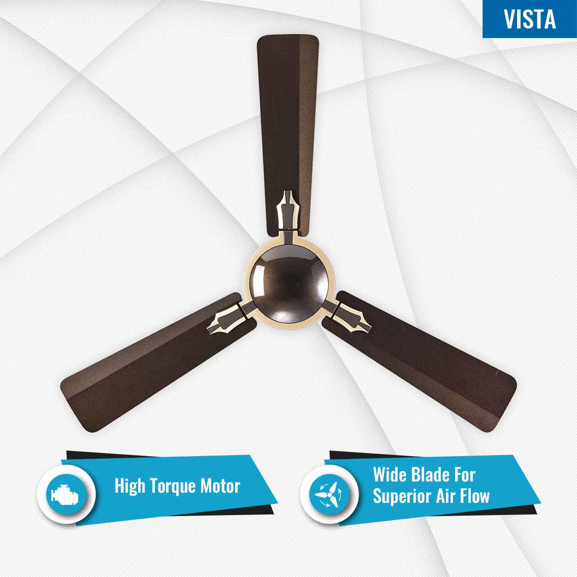 Also available as 1200mm ceiling fans Seion Vista fans are built with a powerful motor that gives higher air thrust and air delivery.